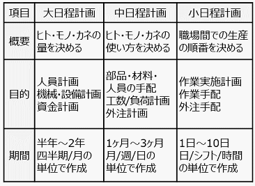 選択肢ウの大日程計画は、年単位で立てられる計画ですのでこの選択肢は×です。月単位の計画は中日程計画です。