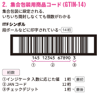 入力ミスや読み誤り防止の数字はチェックデジットです。GTIN-14では最後の1桁がチェックデジットであり、インジケータ部分ではありません。