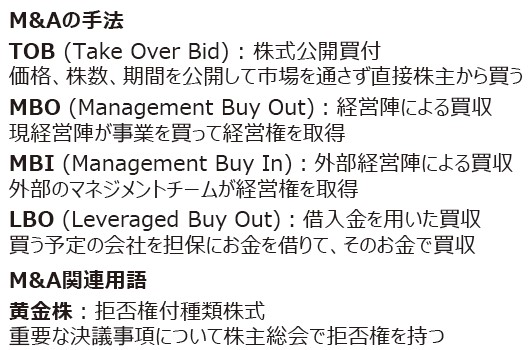 エ 財務担当役員と同僚の役員は、投資ファンドの支援を受けることなどを通じてオーナー社長から株式を買い取り経営を引き継ぐ。