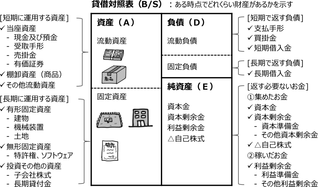 貸借対照表について、まとめシートでは以下の通り解説しています。