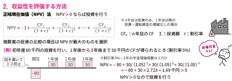 NPV = − 投資額+(FCF × 年金現価係数 + 売却額 × 複利現価係数 )