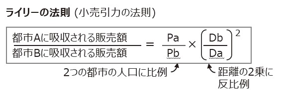 A市:B市の販売額=A市人口(20万人)/B市人口(5万人)×(X町とB市の距離 6km/ X町とA市の距離 12km)2 より
